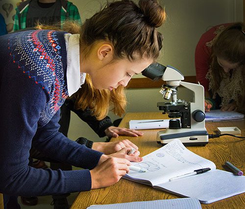 Learn to appreciate the beauty and complexity of God’s creation. Through this biology course, students study the beauty and complexity of God’s creation, including a hands-on laboratory science experience that correlates with text concepts. The weekly community group seminar experiments reinforce the scientific method, teaching microscope use and dissection techniques, all while remaining firmly rooted in a biblical, Christian worldview. Students sketch their observations, record their methods and data in their journals, and complete formal laboratory reports from selected experiments.